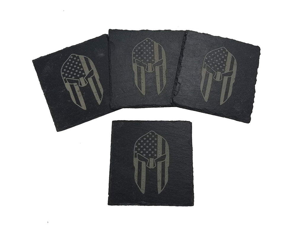American Flag Spartan Gladiator Helmet Slate Coaster Set