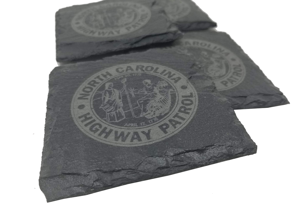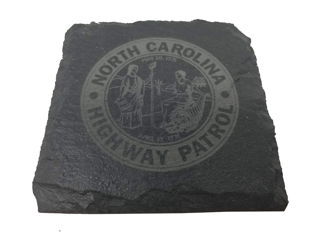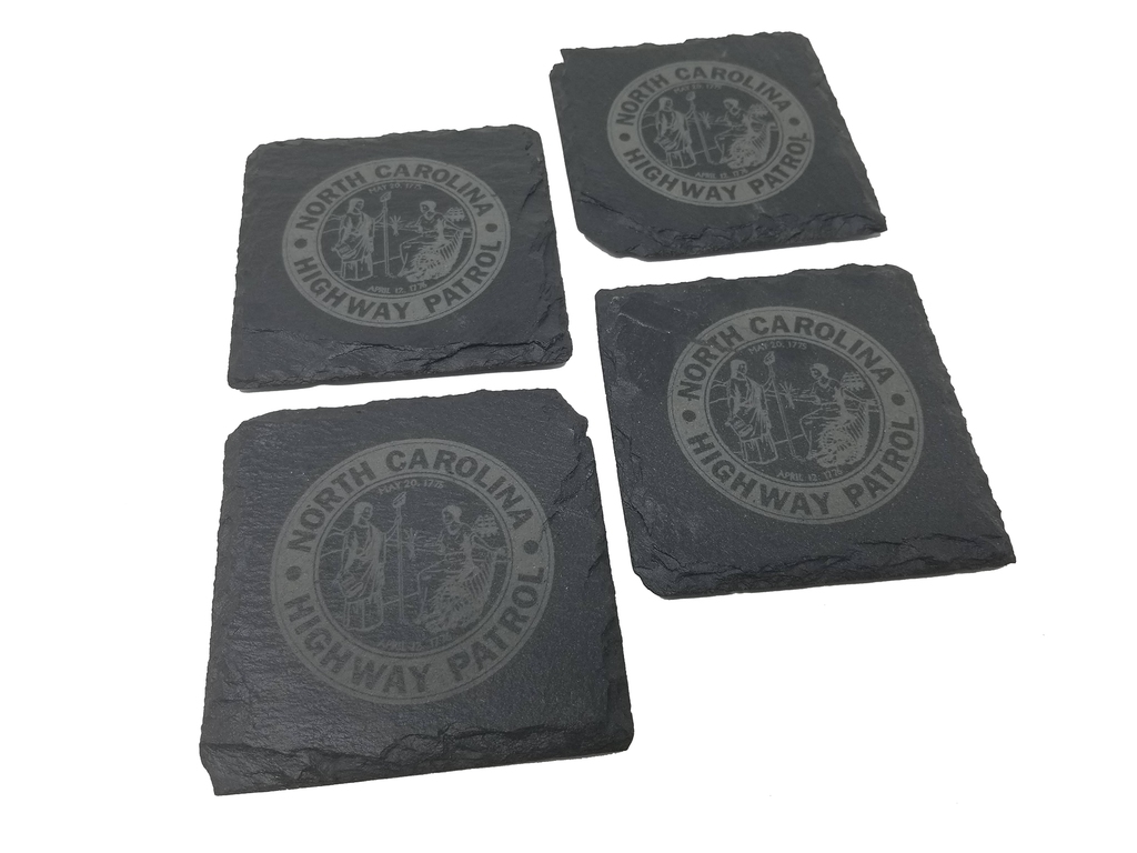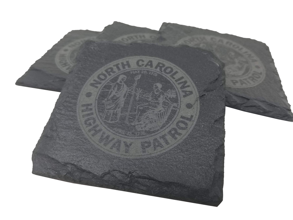 This North Carolina Highway Patrol coaster set (4) is the perfect gift for an officer or anyone that supports or associated with NCSHP. The NC Highway Patrol design is etched into the natural slate coaster that measures about 4 inches. Great gift for a new graduate from the academy, promotion, retirement, housewarming or any other occasion.