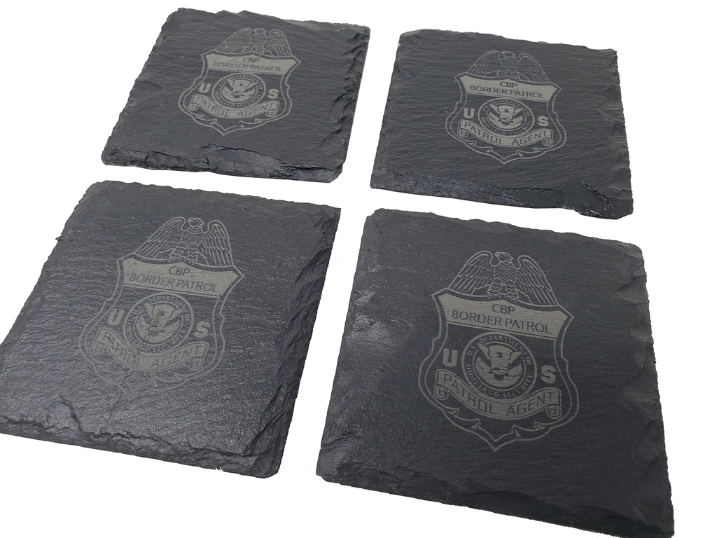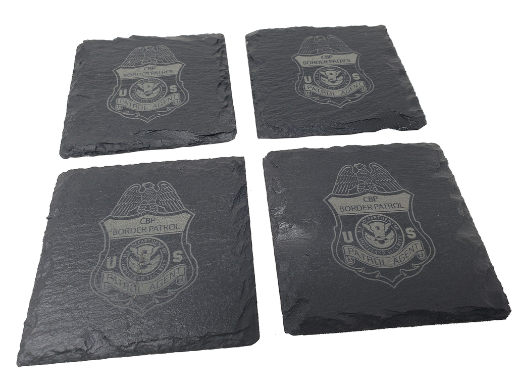 This U.S. Customs and Border Protection badge coaster set (4) is the perfect gift for a border patrol agent. The badge is etched into the natural slate coaster that measures about 4 inches.  Great gift for a new career at the CPB, promotion, retirement, housewarming or any other occasion.