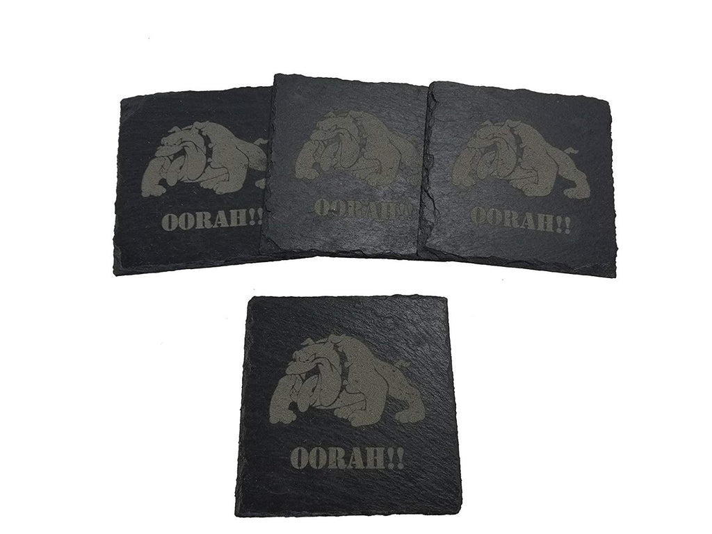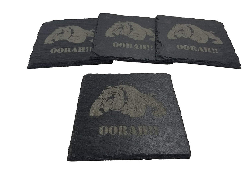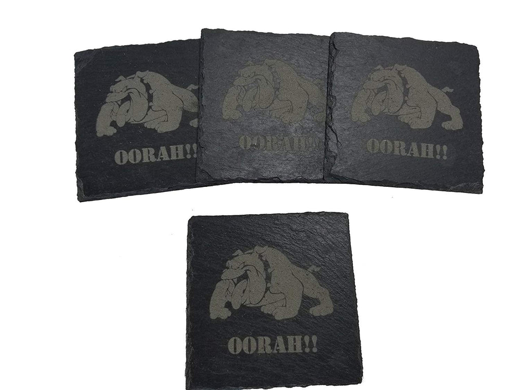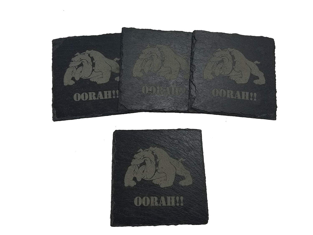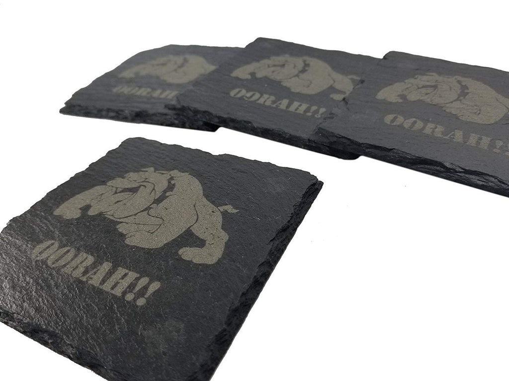 USMC Bulldog Oorah Slate Coaster Set - Marine Corps Slate Coasters