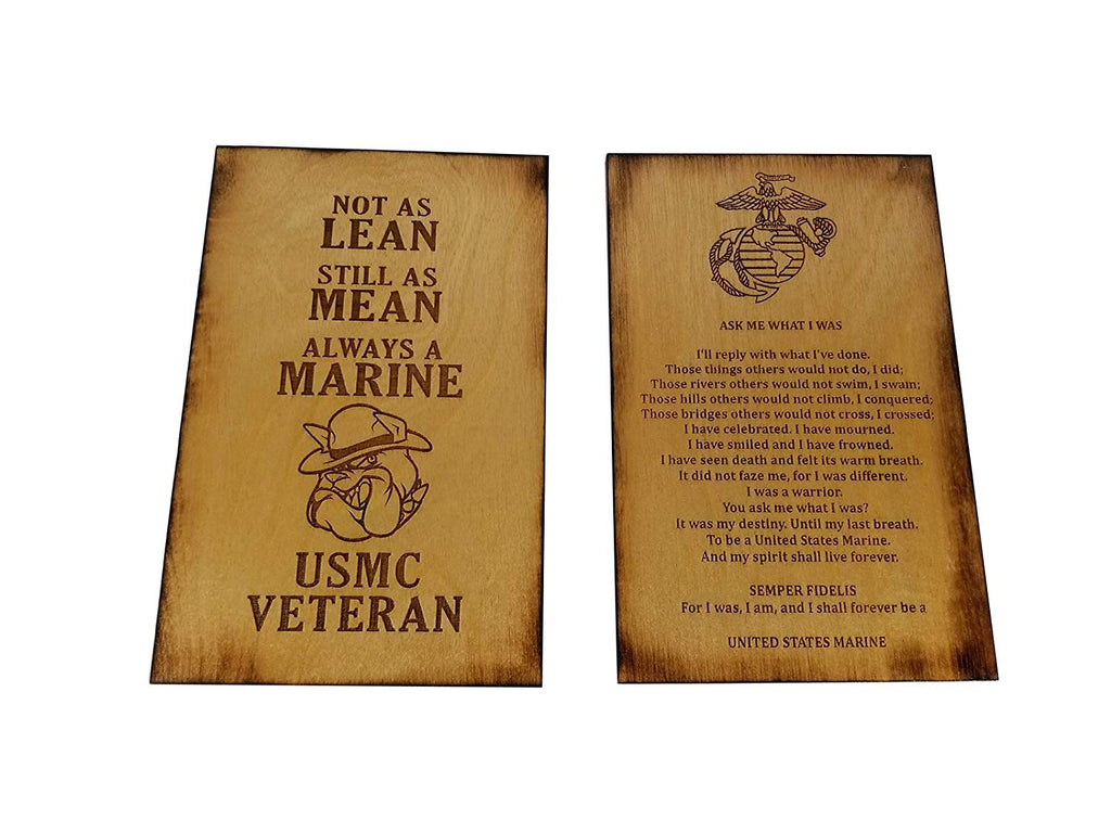 USMC Veteran - Not As Lean -Still As Mean - Always a Marine - and Ask Me What I Was USMC Sign Set - 5.5 x 8.5 sign with Scorched Edges